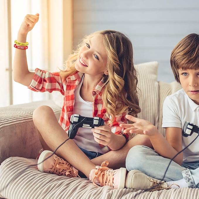 - 【Reliable Material】These video game party wristband are mainly made of quality silicone materials.It’s a water proof,eco-friendly and non toxic product,the colors and words are clearly printed that not easy to fade,soft to touch,which are stretchable,flexible,not easy to break,can serve you for a long time,bring you a comfortable wearing experience.