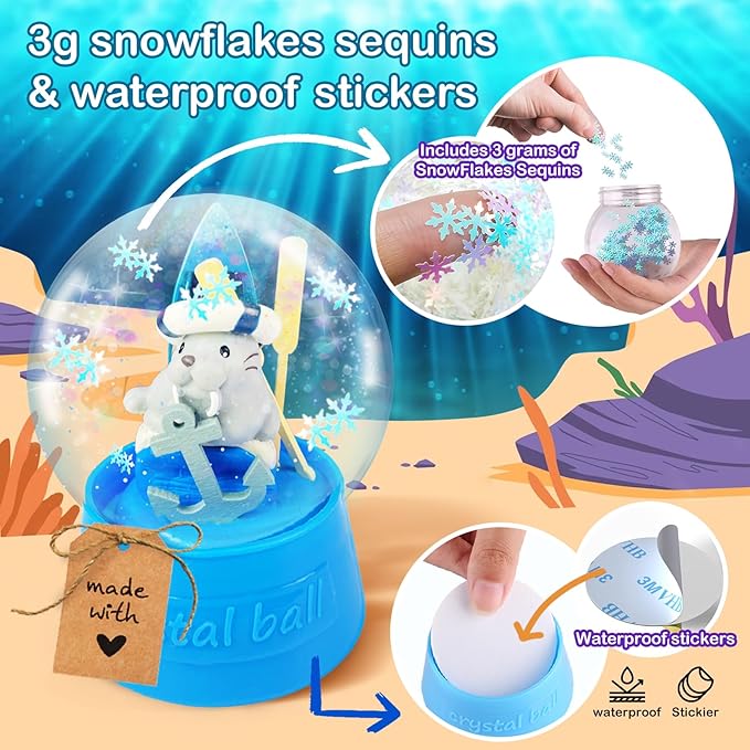- đŽ ăSafety and Quality FirstăOur DIY snow globes set, crafted from top-notch, waterproof materials, ensures zero leakage, keeping your child engaged with worry-free entertainment. Safe, engaging, and fun â thatâs a promise!