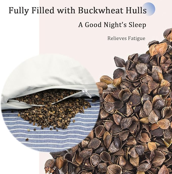 - Neck And Back Support: The striped pillow cases is machine washable; Medium firm pillow filled with buckwheat hulls, provides cervical support, less neck and shoulder pain; Buckwheat pillows for slepping can fill the gap between your back and the chair/bed;
