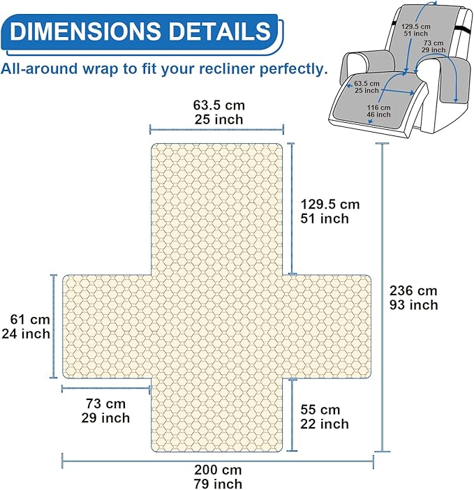- 100% Dual Waterproof Protection: Waterproof recliner chair cover feature premium waterproof fabric and dual waterproof layer technology for unrivaled protection against spills, accidents, and moisture. Keep your recliner dry and stylish, with the ultimate in durability.