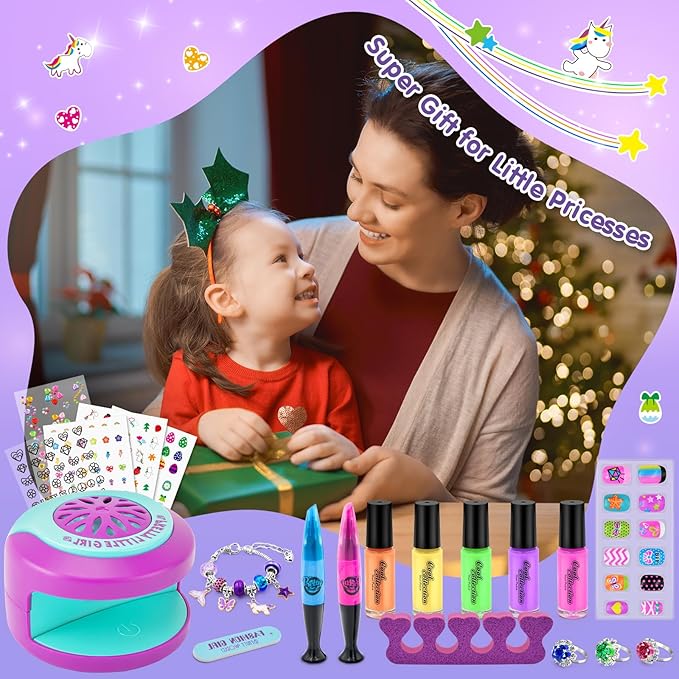- 【Kids Nail Polish Set for Girls】: Get your glam on with your very own nail art studio! Create sparkly, colorful, bejeweled nails to suit your mood and style. Do your own manicure, or throw a party and invite your friends to polish along with you!