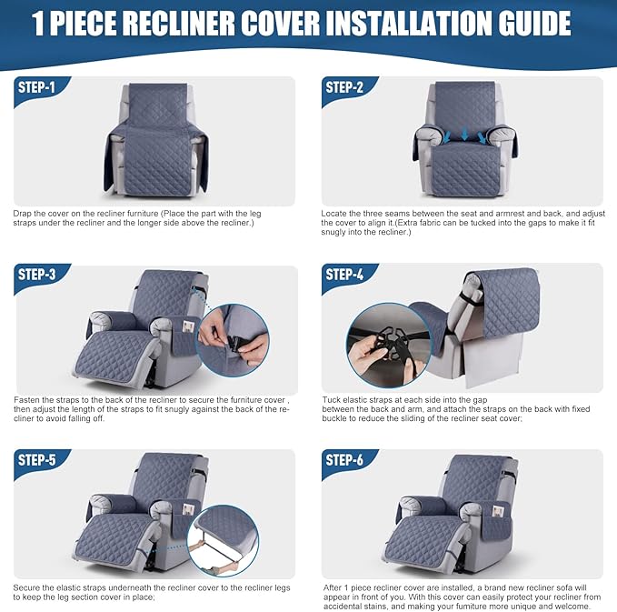 - DOUBLE WATERPROOF LAYER - 100% PROTECTION: Our recliner chair cover adopts new double-layer waterproof treatment technology, providing 100% waterproof and leak-proof function; Protect your furniture from spills, daily wear and tear or pet hair, ensuring your furniture always stays clean and dry
