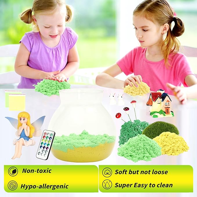 - 【Versatile Night Light】: This kit is not just a fun craft project—it also doubles as a night light. The soft glow from the terrarium creates a calming vibe in any room, making it a great companion for bedtime or playtime. It comes with 12 color options, 2 flashing modes, 2 timer settings, and 5 levels of brightness, all controlled easily with a remote.