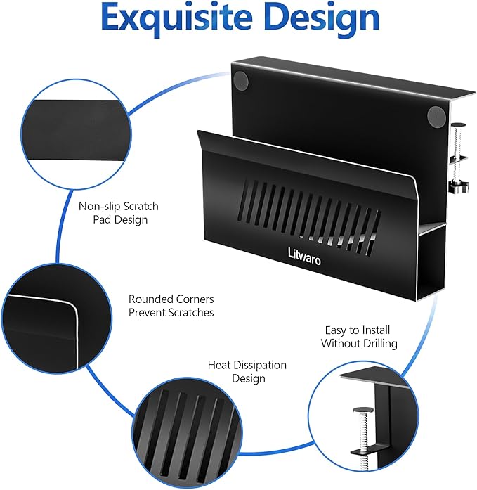 - 【Easy to Install】No drilling required and no damage to your desk. Litwaro clamp on desk organizer features a simple clip, you just turn the knob to fix it on the edge of your desk. And the practical design of silicone pads and rounded corners can directly prevent your laptop from being scratched.