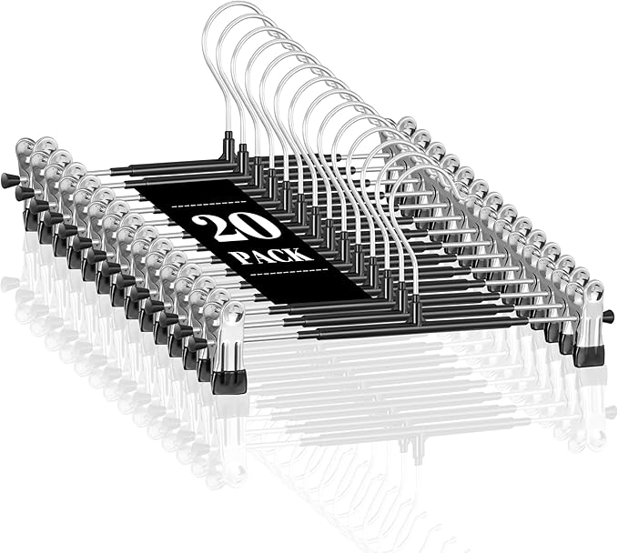 20 Pack 14Inch Heavy Duty Pants Skirt Hangers with Clips,Metal Trousers Hanger for Jeans Black Non Slip Women Shorts Hangers Saving Space Clothing Hanger for Adult,Men,Children,Kid,Baby