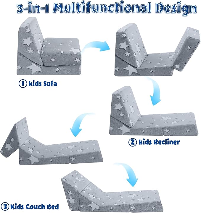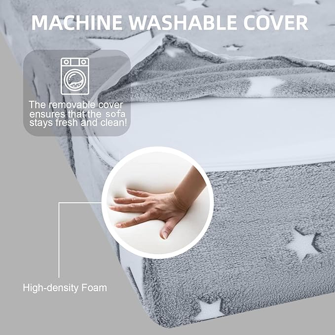 - [Comfy Kids Fold Out Couch] Inner: High-density foam provides comfortable support, and this kids foldable couch is lightweight and durable. Outer: The kids folding chair bed has an invisible zipper for removal and is washable. The toddler sofa bed is perfect for birthday gifts, Christmas gifts, and holiday gifts