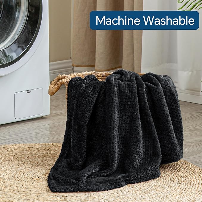 BEDELITE Travel Blanket with Bag, Ultra-Soft Jacquard Fleece Blanket with Luggage Sleeve & Backpack Clip, Airplane Blanket Travel Essentials, Black