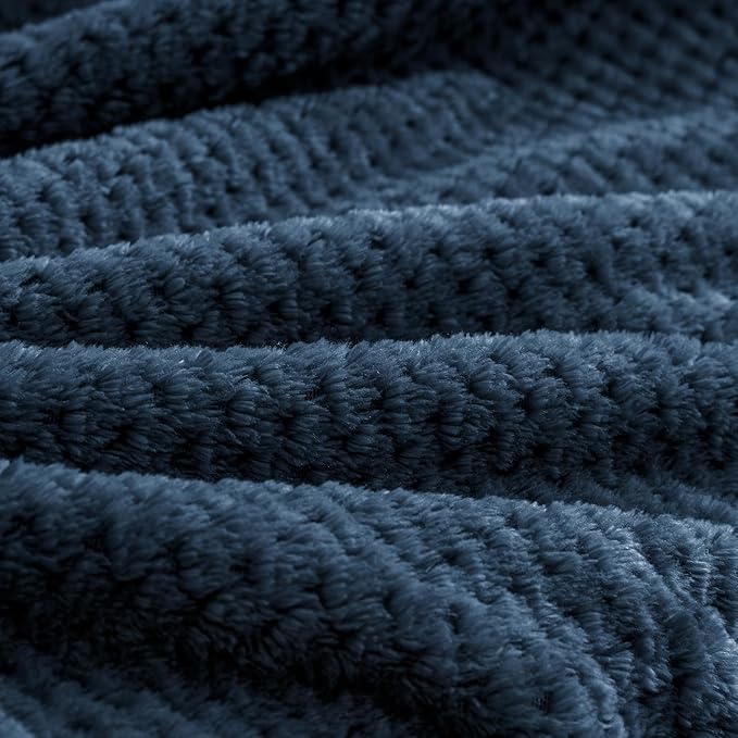 BEDELITE Travel Blanket with Bag, Ultra-Soft Jacquard Fleece Blanket with Luggage Sleeve & Backpack Clip, Airplane Blanket Travel Essentials, Navy