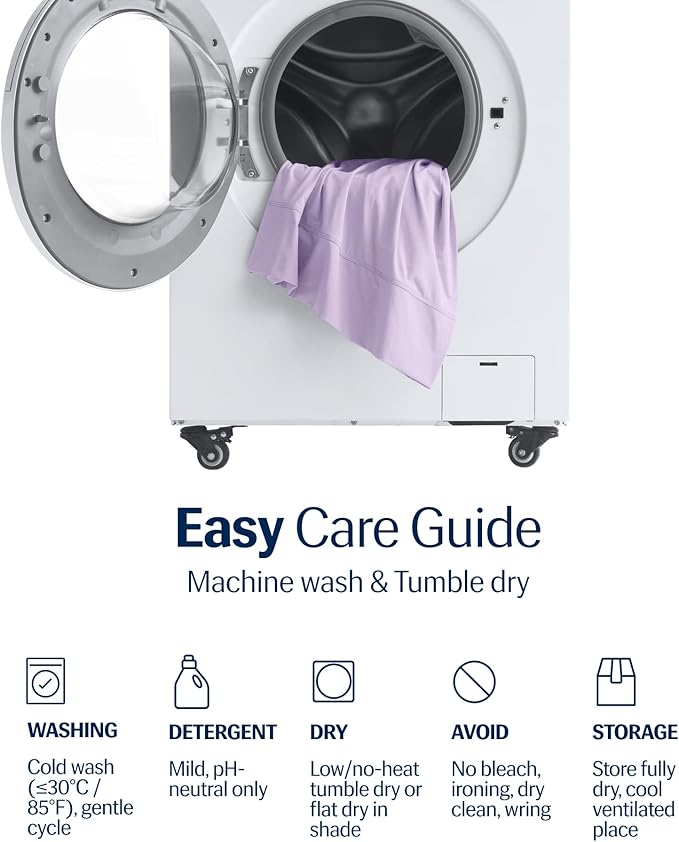 - Product Care Instructions : Washing: 1) Wash on low with a low alkaline or neutral Ph detergent. 2) Cold water and low spin. 3) Don't bleach. 4) Don't use fabric softener. Drying: 1) Tumble dry on low/no heat or line dry. 2) Don't use iron. 3) Don't dry clean. Washing: 1) Wash on low with a low alkaline or neutral Ph detergent. 2) Cold water and low spin. 3) Don't bleach. 4) Don't use fabric softener. Dryi… See more