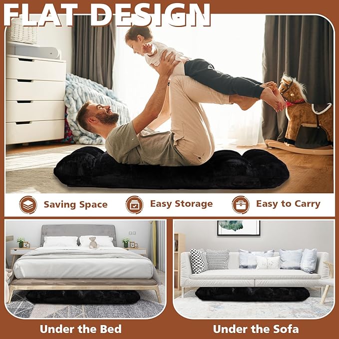 Folding Floor Chair 14-Position Cushioned Adjustable Floor Lazy Sofa Chair w/Breathable Cotton & Skin-Friendly Flannel for Adults & Kids Ideal for Reading Meditating, Black