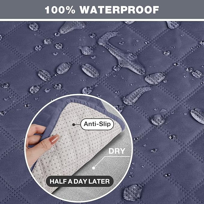 TAOCOCO Waterproof Recliner Loveseat Cover Non-Slip Sofa Slipcover, Pet Couch Cover for Loveseat Recliner with Straps, Washable Reclining Loveseat Cover Furniture Protector (2 Seater, Bluish Gray)