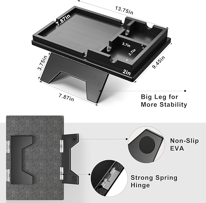 - 【Fits a Variety of Wide Sofa Armrests】The Couch Arm Tray size of the opening angle of the splint with spring Hinge can be adjusted, so that the sofa table can adapt to wide sofa armrests of different shapes Flat, Rolled, Straight Arms, and up to 11.8 inches in width to meet the needs of different scenes. (3.5" flat arms to 11.8" arms!)