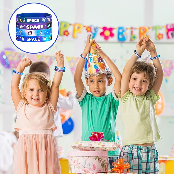 - 【Widely Applicable】These astronaut silicone bracelets are not only suitable for space theme parties,but also for various occasions.Can be applied as outer space party favors,galaxy theme birthday decorations,alien party decorations,astronaut party favors,birthday decorations for classroom,and they are also suitable as goodies bags fillers,birthday pinata,carnival rewards,game prizes,party gifts and exchange gifts.