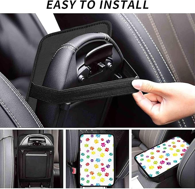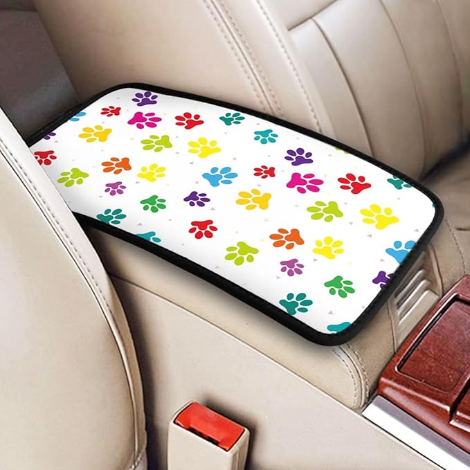 DORKEIXIA Colorful Dog Paw Prints Auto Center Console Armrest Pad Universal Car Center Console Cover Seat Box Cover for Sedan, Van, SUV, Truck Car Accessorie