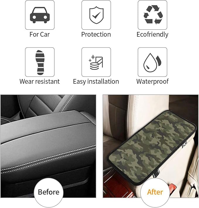 DORKEIXIA Military Camo Camouflage Black Brown Green Army Hunting Auto Center Console Armrest Pad Universal Car Center Console Cover Seat Box Cover for Sedan, Van, SUV, Truck Car Accessorie