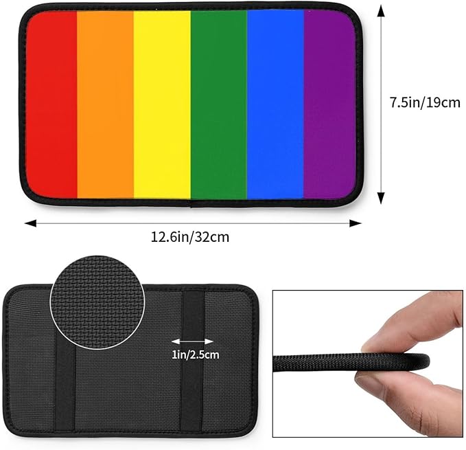 DORKEIXIA Rainbow Gay Pride Flag LGBT Auto Center Console Armrest Pad Universal Car Center Console Cover Seat Box Cover for Sedan, Van, SUV, Truck Car Accessorie