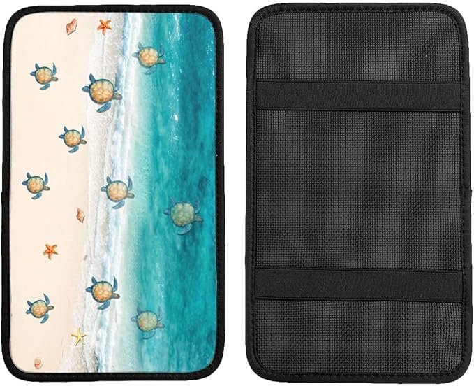 DORKEIXIA Ocean Kawaii Cute Turtle Crawling On The Beach Auto Center Console Armrest Pad Universal Car Center Console Cover Seat Box Cover for Sedan, Van, SUV, Truck Car Accessorie