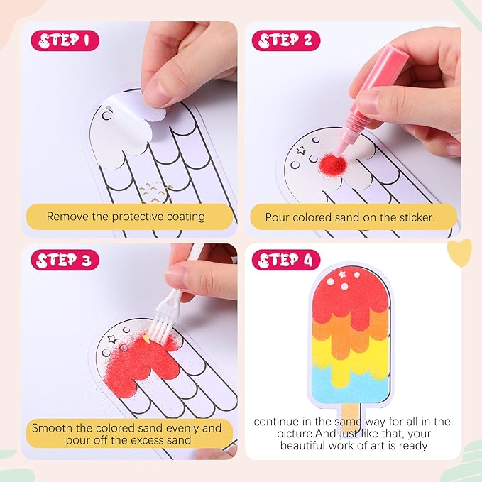 - Summer Treat Theme Gifts: the DIY summer treat sand art paintings are rich in quantity and exquisite in patterns, which are suitable for children to color together; They can be given as dedicated small gifts to friends and family; The small gifts made by hand are thoughtful and good as a gift choice
