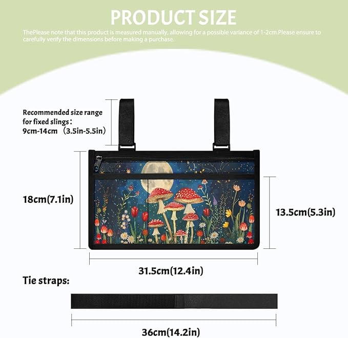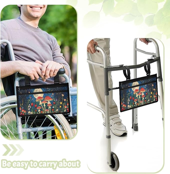 ZOUTAIRONG Moon Mushroom Wheelchair Side Bag Walker Bag Wheelchair Accessories for Adults Waterproof Armrest Organizer Storage Pouches with Reflective Stripes for Electric Wheelchair Walkers Seniors