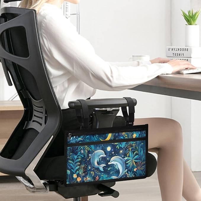 ZOUTAIRONG Blue Dolphin Wheelchair Bag wiht Cup Holder Wheelchair Side Bag for Adults Walker Bags and Pouches Wheelchair Bags to Hang on Side Power Wheelchair Accessories for Seniors Handicap