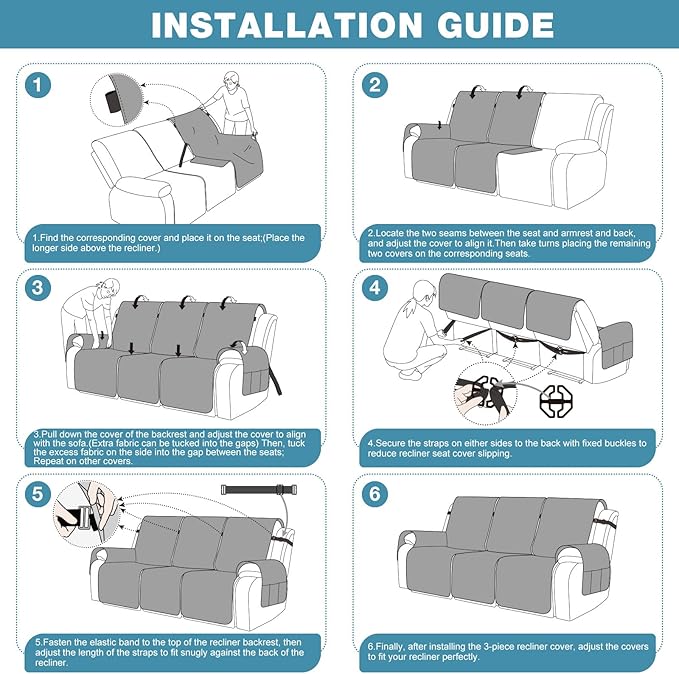 - 【WATERPROOF PREMIUM FABRIC】This 3 seater reclining sofa cover is crafted from high quality fabrics, mature waterproof coating technology ensures it has good leak-proof functions, the inner layer is filled with thick and soft materials, strong and durable, it provides excellent comfort for your recliner