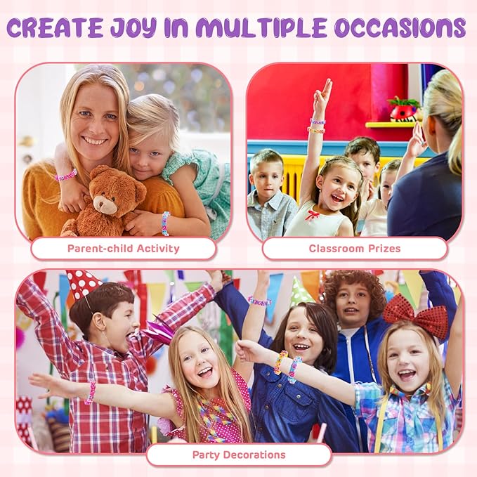 - Safe and Fun: These kids' play bracelets are made from safe silicone, ensuring softness and comfort for delicate skin, allowing kids to play safely. Creating bracelets together enhances parent-child relationships, fostering wonderful family moments