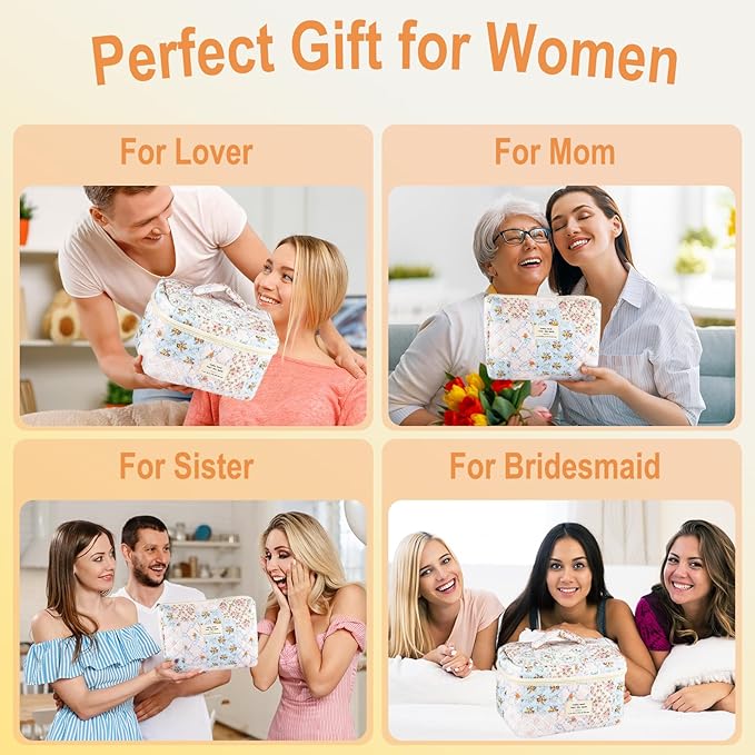- PERFECT GIFT: The cotton quilted makeup bag is an ideal choice for travel, vacation, school, camping, bathroom organization, and other outdoor activities, is also very suitable as a present for your friends, family or someone else you like. This flip cosmetic bag is the best trendy birthday gift for women and your family
