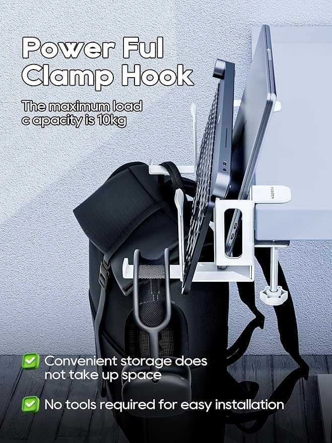 - Headphone Holder/Game Controller Holder: There is a 11.6cm/4.5-inch long hook at the bottom of the laptop stand, which can be used to hang headphones, game controllers or hats, handbags, etc.
