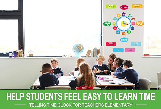 - 【Back To School Teachers Supplies】: The teaching clock bulletin board set is not just a learning tool, but a colorful addition to any classroom decor. The learn to tell time clock add a lively touch, creating a warm, welcoming atmosphere conducive to learning. Great back to school classroom supplies for teachers elementary and learning clock classroom must haves. Enhancing your students' education and enriching their learning environment.
