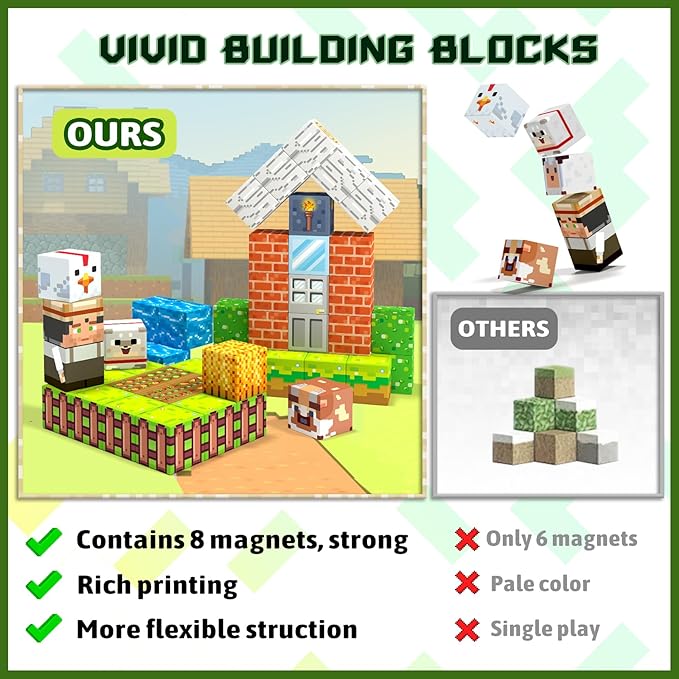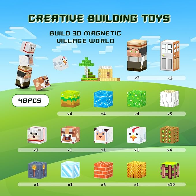 - Magnetic Blocks - Farm Life Set: Step into a delightful world of farm with our magnetic building blocks set! Featuring a little farmer, along with lively animals and vibrant countryside, kids can create their bustling farm world.They can build cozy house, look after their cute pet, light up the night with torches, and explore the beauty around them. Unleash your children's creative thinking as they enjoy hours of imaginative role-play fun!