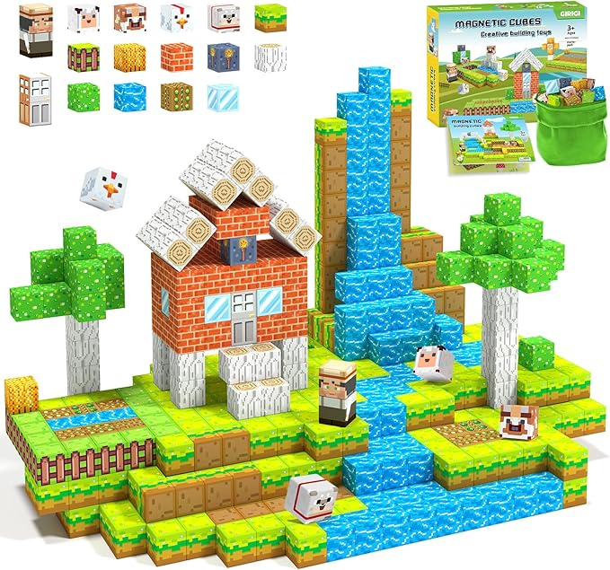 - All-compatible Powerful Magnetic Cubes: GIRIGI magnetic blocks are compatible with popular market brands, allowing you to expand your collection by adding more building blocks. More cubes, more fun! Unlike other inferior magnetic toys with only 6 magnets, GIRIGI magnetic cubes feature a superior 8-magnet design. The stronger magnetic bond allows for more flexible and sturdy construction of unexpected landscape structures. Play with any magnetic surfaces(like refrigerator or board) for more fun!