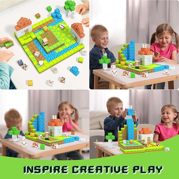 - STEM Montessori Sensory Toys: Unlike other plain-colored magnet cubes, our magnetic toys feature vivid patterns and diverse designs created through innovative technology and magnetism for a vibrant play experience. This building construction toys promotes diversity with various buildings and characters, encouraging interaction through role-play and storytelling while teaching the importance of community life and cooperation. Perfect STEM Learning Toys nurture skills like problem-solving, spatial awareness, social skills, team building skills, fine motor skills, etc.