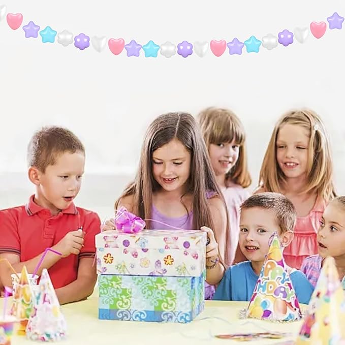 GOGOSO Ball Pits Balls for Toddlers, 100 Stars Hearts Florid Shapes Ball, Flowers Plastics Balls for Bounce House, Pastel Ball for Kids Birthday Party Xmas Friendship Bracelet Banner Decor