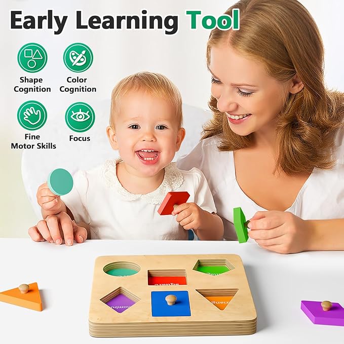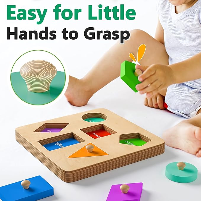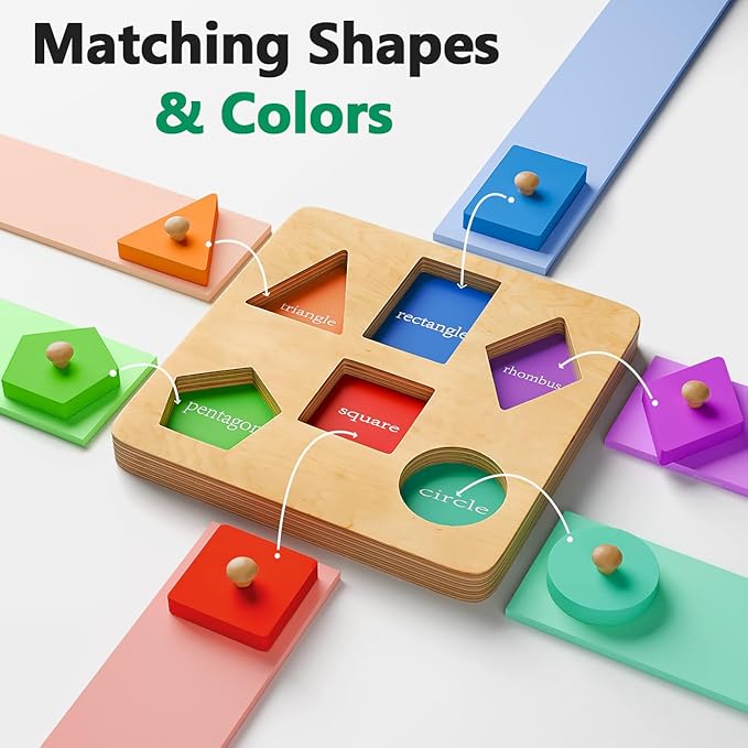- EARLY LEARNING FUN : Our shape knob puzzle helps toddlers develop critical early shape and color recognition. During the challenge of matching shapes, toddlers can recognize shapes and colors, and they’ll find the fun of the perfect match to keep them engaged to play again!