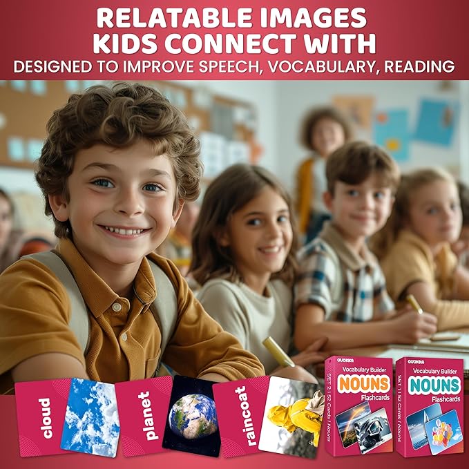 - DIVERSE VOCABULARY FLASH CARDS: 104 real-life images cover nouns of daily objects, animals, foods, and more; promote cognitive growth through visual learning; ideal kids flash cards in kindergarten, schools and adults in language development settings