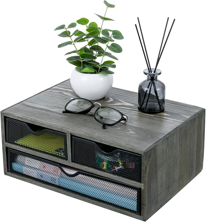 - Multipurpose vintage gray solid wood office supplies storage box with 3 drawers keeps any table, countertop, or desk workspace clutter-free **Accessories are NOT included**