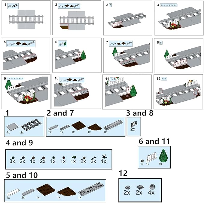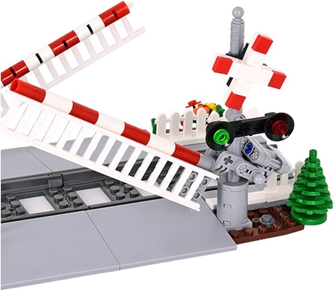 Train Tracks Building Block Set 02, City Train Track Railroad Tracks, Traffic Light Railroad Crossing Building Bricks, Compatible with Lego 853792 Accessory, Kid Gifts for Ages 6+