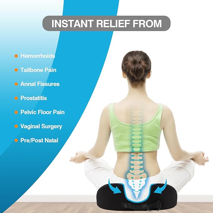 - ❥The Donut Pillow Relief for Sedentary Discomfort: This donut pillow helps alleviate lower back pain, hip pressure, and sciatica from prolonged sitting. Ideal for those pregnant women, post-surgery recoveries, and office workers who spend long hours sitting.