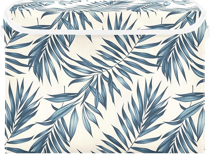 senya Large Storage Bins with Linen Collapsible Foldable Storage Cubes Fabric Closet Organizer Containers box with Flip-Top Lid for Home Bedroom Office 16.7 x 12.6 x 11.8in (Tree)