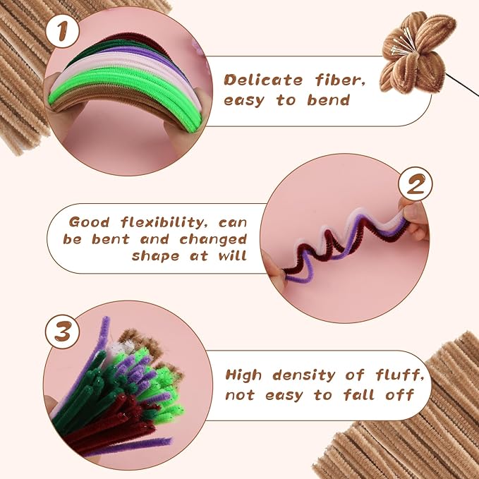 - Premium Quality Material: Our pipe cleaners made of wire and polyester fiber, durable, soft, and comfortable, it can be flexibly bent into creative shapes and figures.