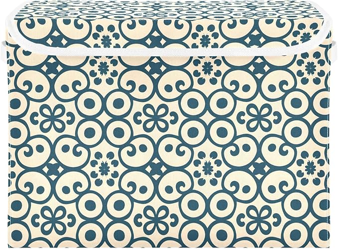 senya Large Storage Bins with Linen Collapsible Foldable Storage Cubes Fabric Closet Organizer Containers box with Flip-Top Lid for Home Bedroom Office 16.7 x 12.6 x 11.8in (Abstract Ornament)