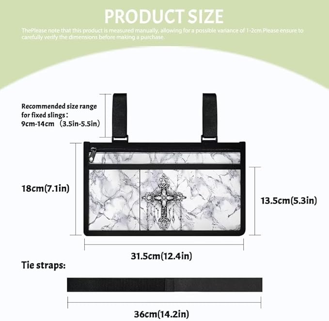 ZOUTAIRONG Marble Cross Wheelchair Bag Side Arm Bag Walker Accessories Armrest Organizer Storage Pouches Walker Bag for Electric Wheel Chair Walkers Adults, Seniors