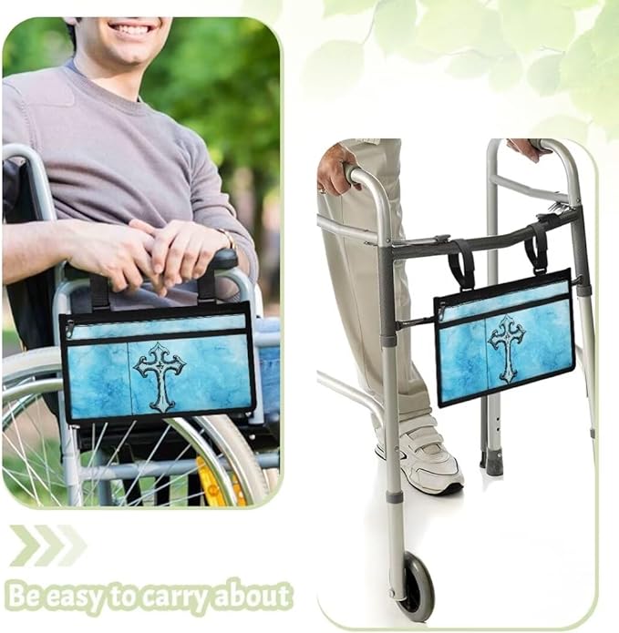 ZOUTAIRONG Blue Cross Wheelchair Side Bag Walker Bag Wheelchair Accessories for Adults Waterproof Armrest Organizer Storage Pouches with Reflective Stripes for Electric Wheelchair Walkers Seniors