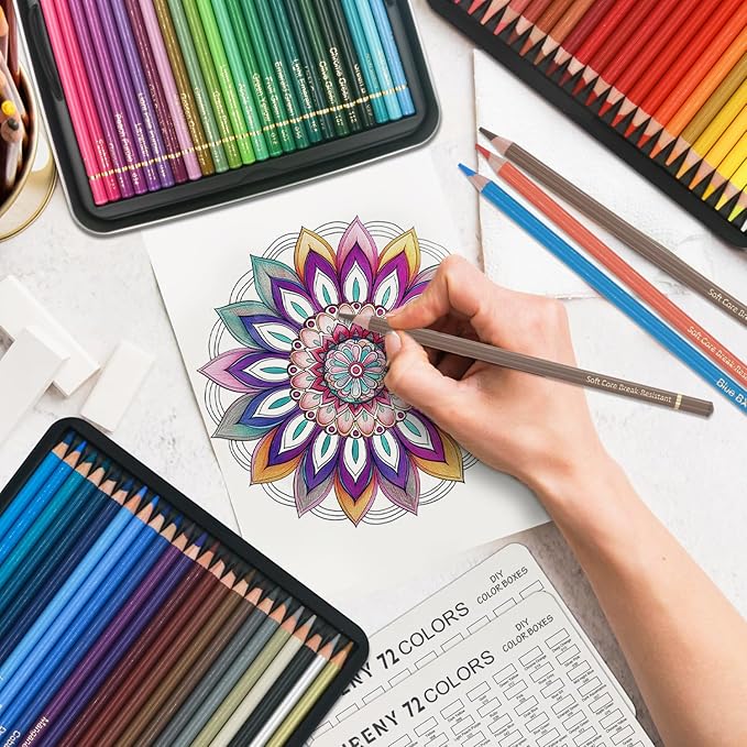 Colored Pencils for Adult Coloring Books, 72 Oil-Based Color Pencils, 3.8mm Soft Core, Vibrant Coloring Pencils in Tin Box for Adults, Professional Art Supplies forSketching, Blending and Layering.