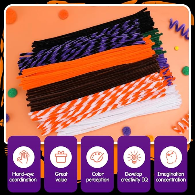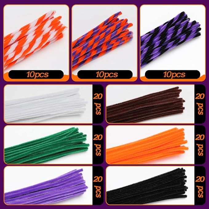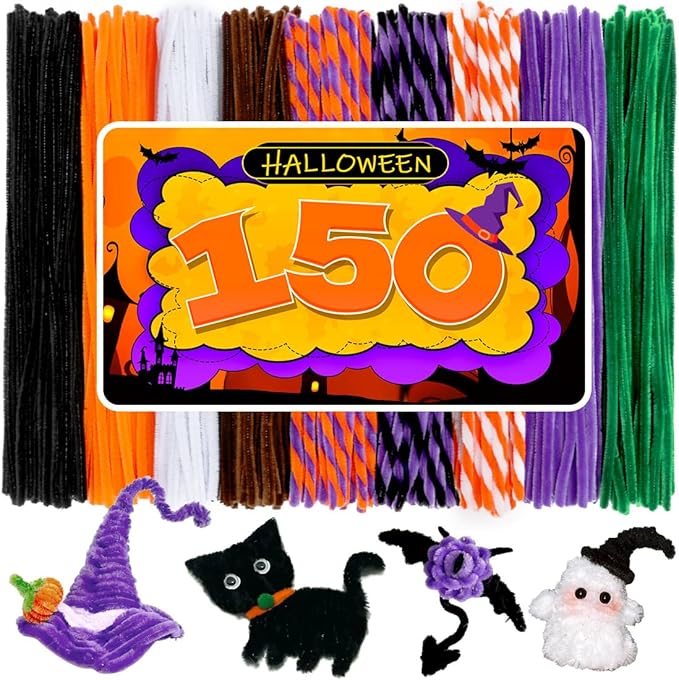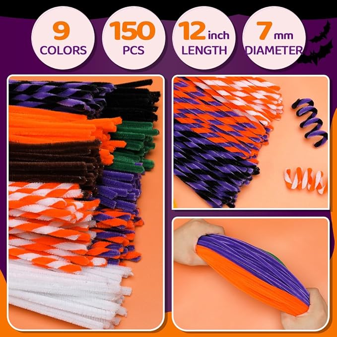 150pcs Halloween Pipe Cleaners, Pipe Cleaners for Crafts, Craft Supplies Multicolor Chenille Stems for Art&Craft Christmas DIY Projects(9colors,Halloween)