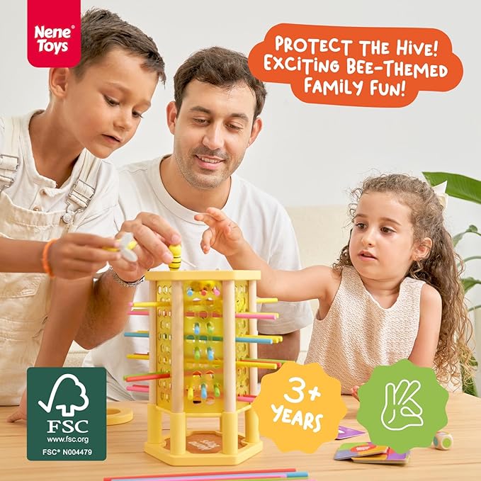 - 🔴 MONTESSORI-INSPIRED LEARNING THROUGH PLAY: BeeFall by Nene Toys is thoughtfully designed to encourage hands-on learning. This bee-themed game enhances fine motor skills, color recognition, and critical thinking in kids aged 3 to 9, making education a natural part of playtime.