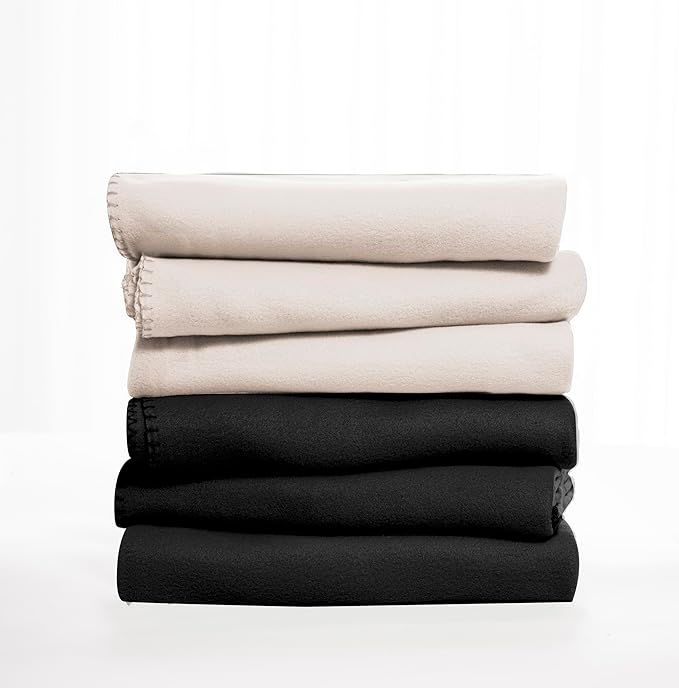 Special SG Glory Fleece Throw Blankets Bulk Fleece Blankets Solid Wholesale Lightweight Warm Soft for Pet Bed Sofa Couch Office Wedding Gifts Travel Seasons Beige and Black 50x60 Inches Pack of 6