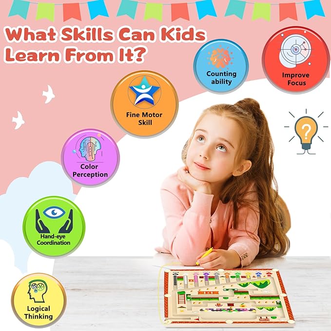- Valuable Educational Toys: Build color and number recognition skills, practice counting and fine motor skills, and keep toddlers busy for hours with our fun magnetic toys. Children love to sort colors, and the maze keeps them quiet and focused