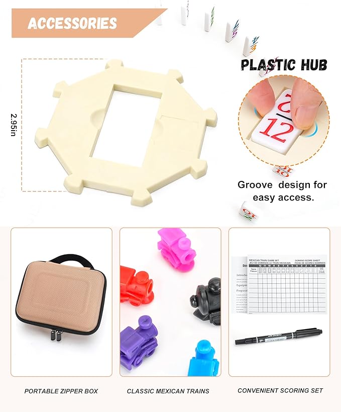- Complete Set: 91 vibrant, color-coded double 12 numeral dominoes ensuring engaging play for 2-4 players.