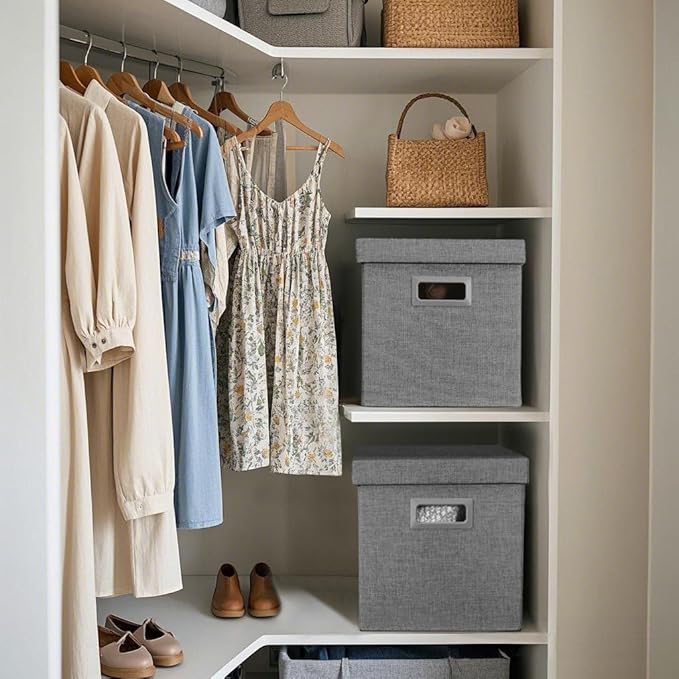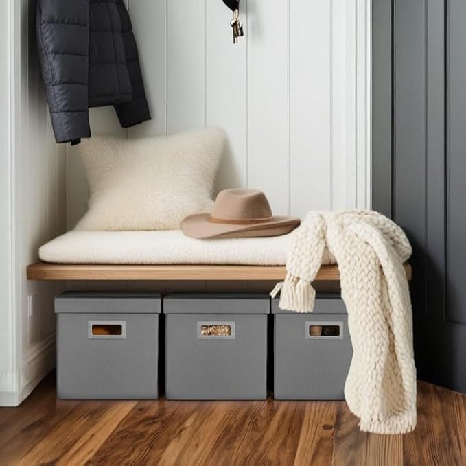 - 💪Elegant Design: Crafted with a beautiful faux linen exterior and sleek cut-out handles for a clean, modern look. Stylish and practical storage solution for any home décor.